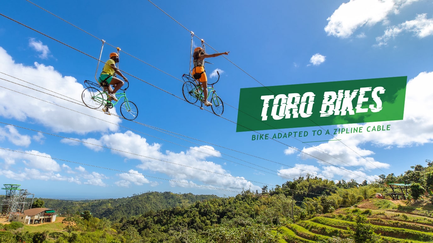 TORO BIKES: Certificado por ""Guinness World Record"". Pedalea en una bicicleta adaptada a un cable de zipline. La actividad proporciona una alternativa para el disfrute de toda la familia. El tour consta de 2 plataformas, diseñadas exclusivamente para interactuar con nuestra zona montañosa con impresionante vista a la costa norte de la isla. Tiene la capacidad de 4 bicicletas simultaneas. Dos estaciones de distintas longitudes con una máxima de 326 metros. Es el circuito más largo de bicicleta en cable del mundo.