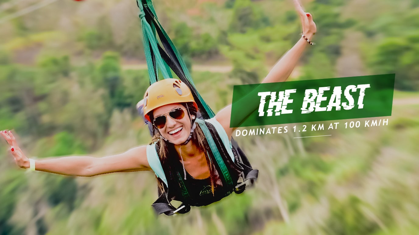 THE BEAST: Have you ever wondered how feels to fly free as a bird through the sky? This tour allows you to experience it firsthand. With our special harness you'll fly like a bird on one of the world's longest single run zip-line. With a length of 4.745 feet (1.446 km) we are sure you will find this tour exhilarating as you approuch speeds up to 60MPH.